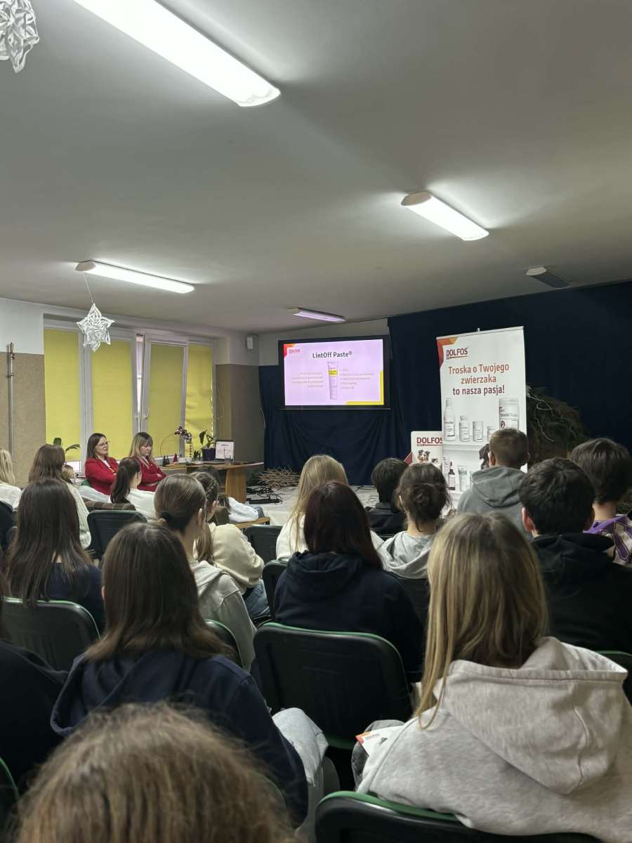 W środę nasi uczniowie mieli okazję uczestniczyć w niezwykle ciekawej prezentacji firmy Dolfos, producenta suplementów diety dla psów i kotów. Podczas spotkania poznali tajniki prawidłowej suplementacji zwierząt oraz dowiedzieli się, jak wspierać zdrowie pupili dzięki nowoczesnym rozwiązaniom.